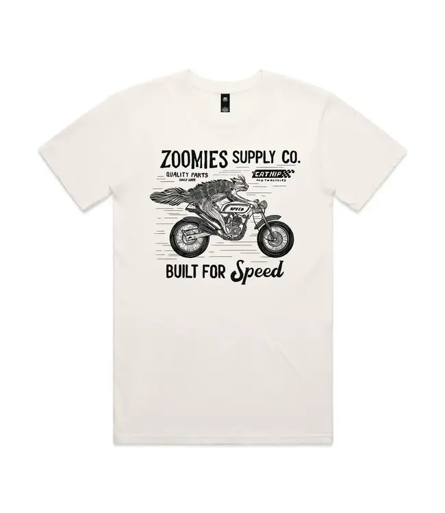 Jesse Jarldane Art Zoomies Motorcycle Cat Tee by Jesse Jarldane
